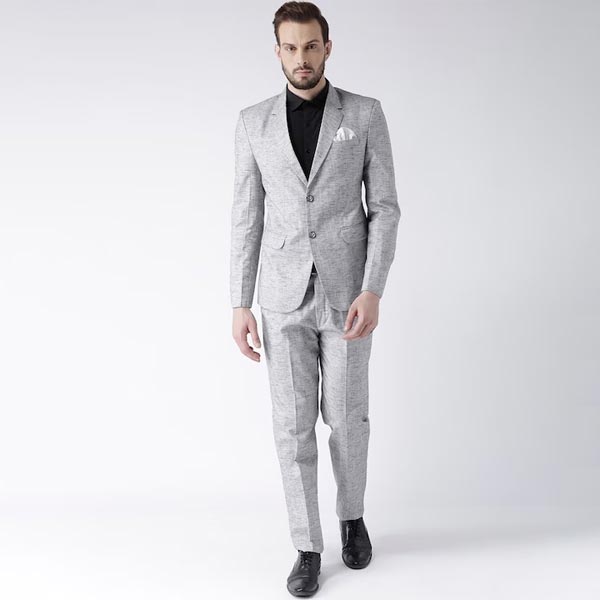 Men Grey Solid Single-Breasted Formal Suit