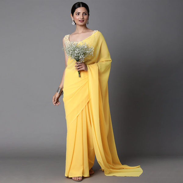 Yellow Solid Pure Georgette Saree